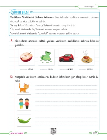 9. Görsellerin altındaki noktalı yerlere varlıkların özelliklerini belirten kelimeler