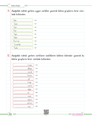 11. Aşağıdaki noktalı yerlere uygun varlıklar yazarak kelime gruplarını birer cüm-
