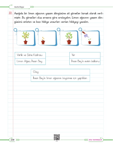 miştir. Bu görselleri oluş sırasına göre sıralayalım. Limon ağacının yaşam dön-
