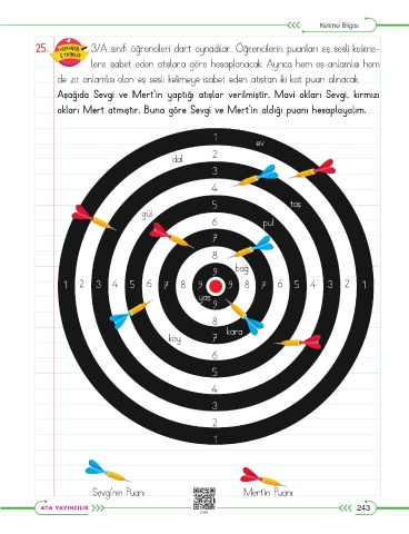 25. 3/A sınıfı öğrencileri dart oynadılar. Öğrencilerin puanları eş sesli kelime-