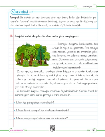 29. Aşağıdaki metni okuyalım. Soruları metne göre cevaplayalım.