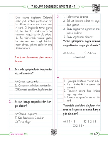 1 ve 2. soruları metne göre cevap- C) 4-2-1-3