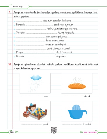9. Aşağıdaki cümlelerde boş bırakılan yerlere varlıkların özelliklerini belirten keli-