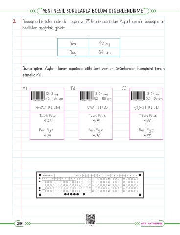 3. Bebeğine bir tulum almak isteyen ve 75 lira bütçesi olan Ayla Hanım’ın bebeğine ait