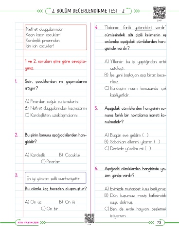 2. BÖLÜM DEĞERLENDİRME TEST - 2