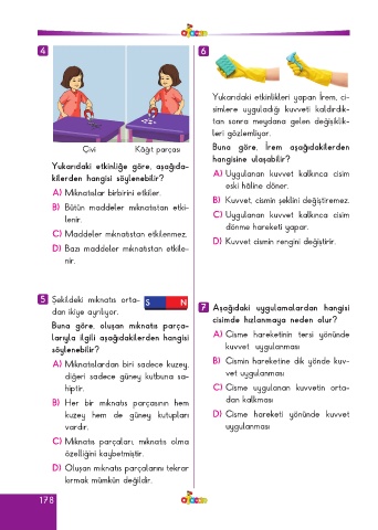 kuzey hem de güney kutupları D) Cisme hareketi yönünde kuvvet