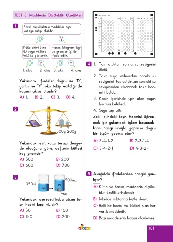 TEST 8: Maddenin Ölçülebilir Özellikleri AD SOYAD >>