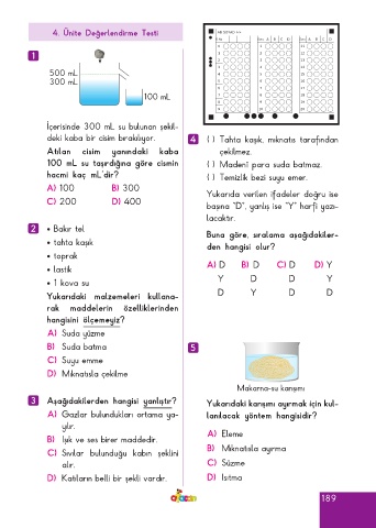 Page 189 - ATA YAYINCILIK 4. Sınıf Afacan Soru Bankası