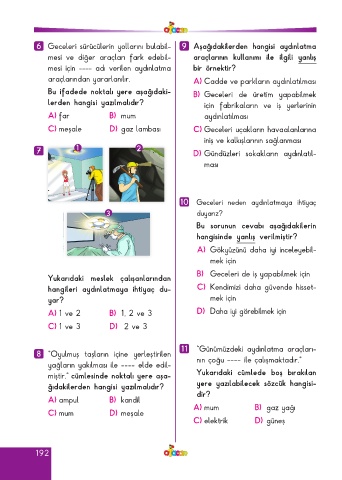 6 Geceleri sürücülerin yollarını bulabil- 9 Aşağıdakilerden hangisi aydınlatma