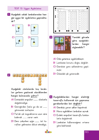TEST 13: Uygun Aydınlatma AD SOYAD >>