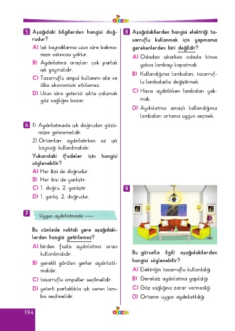 malıdır. A) Elektriğin tasarruflu kullanıldığı