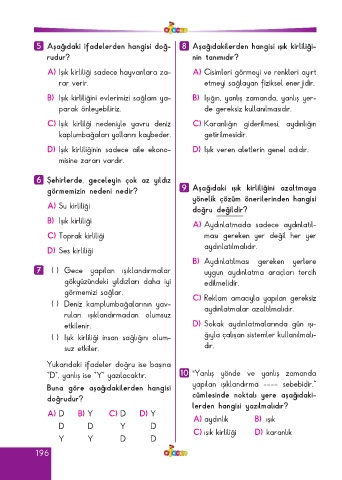 Page 196 - ATA YAYINCILIK 4. Sınıf Afacan Soru Bankası