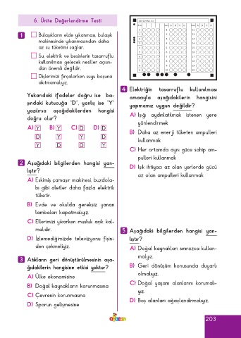 Page 203 - ATA YAYINCILIK 4. Sınıf Afacan Soru Bankası