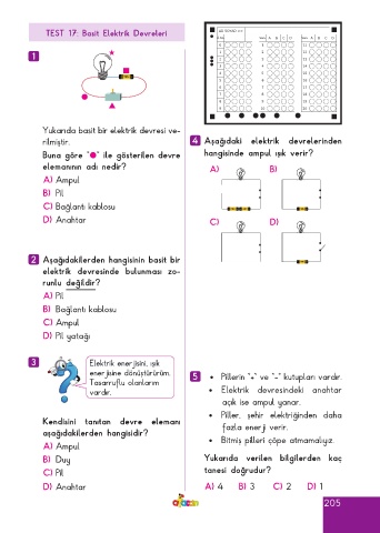 Page 205 - ATA YAYINCILIK 4. Sınıf Afacan Soru Bankası