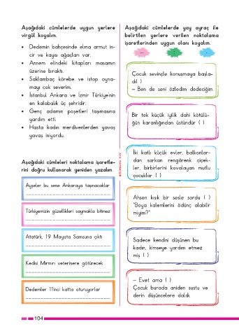 Page 105 - ATA YAYINCILIK 4. Sınıf Etkinlik Çalışma Yaprakları Türkçe