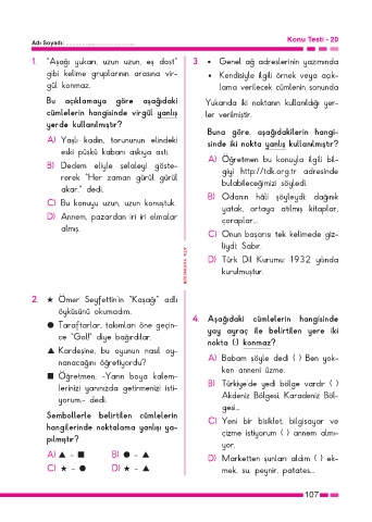 Page 108 - ATA YAYINCILIK 4. Sınıf Etkinlik Çalışma Yaprakları Türkçe