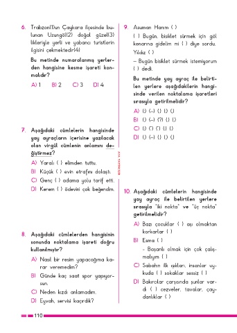 D) Kerem ( ) ödevini çok beğendim. 10. Aşağıdaki cümlelerin hangisinde