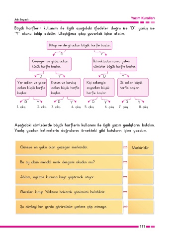 Aşağıdaki cümlelerde büyük harflerin kullanımı ile ilgili yazım yanlışlarını bulalım.