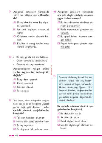 7. Aşağıdaki cümlelerin hangisinde 10. Aşağıdaki cümlelerin hangisinde