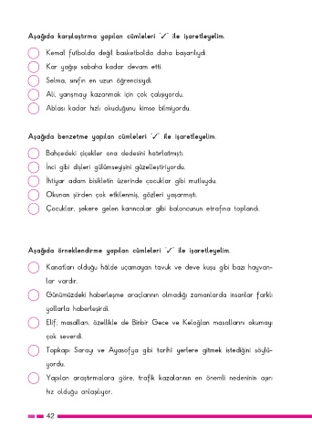 Aşağıda karşılaştırma yapılan cümleleri “✓” ile işaretleyelim.