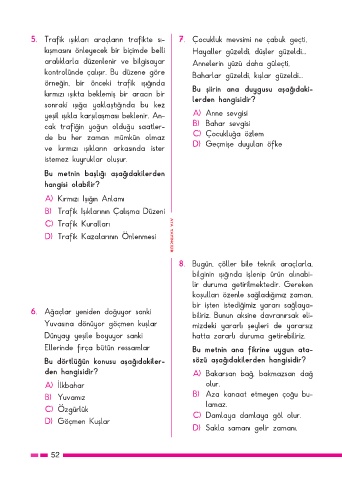 5. Trafik ışıkları araçların trafikte sı- 7. Çocukluk mevsimi ne çabuk geçti,