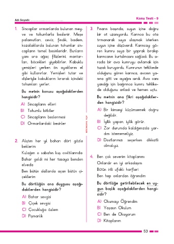 1. Sincaplar ormanlarda bulunan mey- 3. Pınarın başında, suyun içine doğru