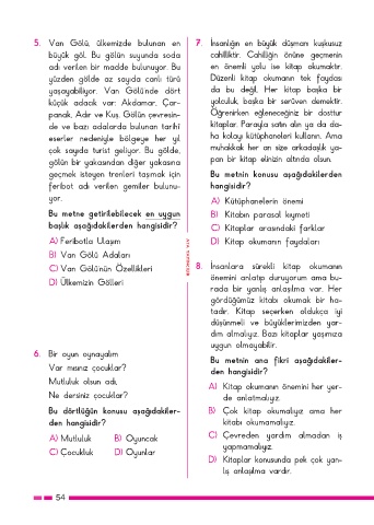 C) Van Gölü’nün Özellikleri 8. İnsanlara sürekli kitap okumanın