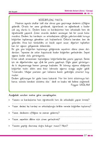 • Yazar, sepetinin dibine niçin çimen yerleştirmiş?