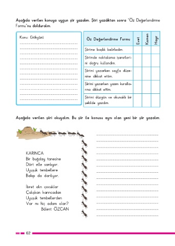 Aşağıda verilen konuya uygun şiir yazalım. Şiiri yazdıktan sonra "Öz Değerlendirme