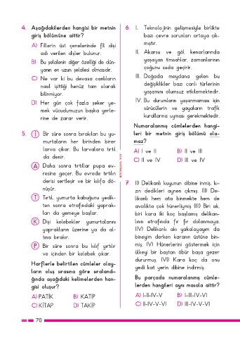 4. Aşağıdakilerden hangisi bir metnin 6. I. Teknolojinin gelişmesiyle birlikte