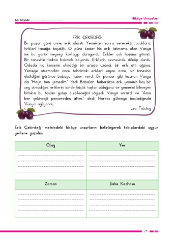 Erik Çekirdeği metnindeki hikâye unsurlarını belirleyerek tablolardaki uygun