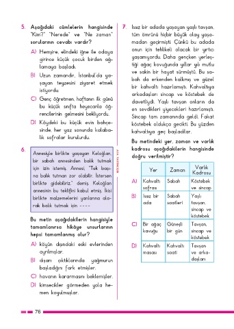 5. Aşağıdaki cümlelerin hangisinde 7. Issız bir adada yaşayan yaşlı tavşan,