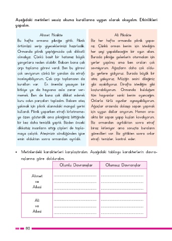 Aşağıdaki metinleri sessiz okuma kurallarına uygun olarak okuyalım. Etkinlikleri