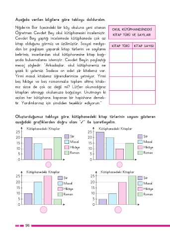 Öğretmen Cevdet Bey okul kütüphanesini incelemiştir. KİTAP TÜRÜ VE SAYILARI