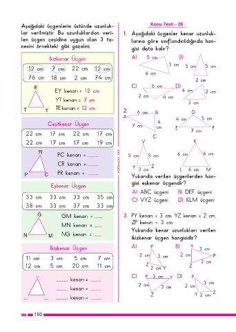 Aşağıdaki üçgenlerin üstünde uzunluk- Konu Testi - 28
