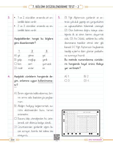 7. BÖLÜM DEĞERLENDİRME TEST - 2