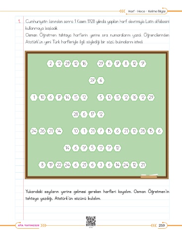 Osman Öğretmen tahtaya harflerin yerine sıra numaralarını yazdı. Öğrencilerinden