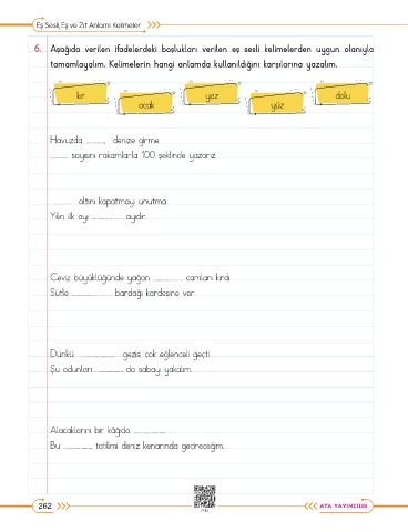 6. Aşağıda verilen ifadelerdeki boşlukları verilen eş sesli kelimelerden uygun olanıyla