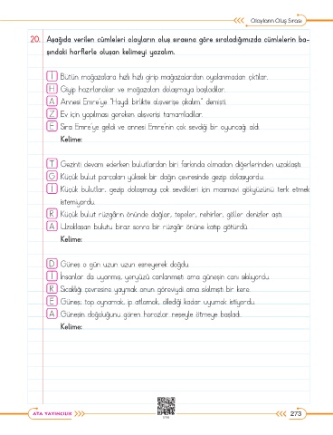 20. Aşağıda verilen cümleleri olayların oluş sırasına göre sıraladığımızda cümlelerin ba-