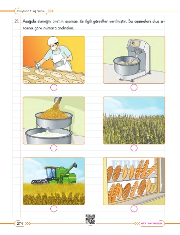 Olayların Oluş Sırası 21. Aşağıda ekmeğin üretim aşaması ile ilgili görseller verilmiştir. Bu aşamaları oluş sı- rasına göre numaralandıralım. 274 5793