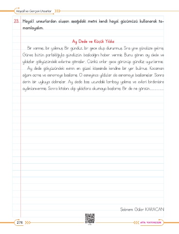 23. Hayalî unsurlardan oluşan aşağıdaki metni kendi hayal gücümüzü kullanarak ta-