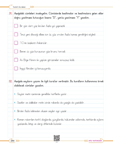 31. Aşağıdaki cümleleri inceleyelim. Cümlelerde kısaltmalar ve kısaltmalara gelen ekler
