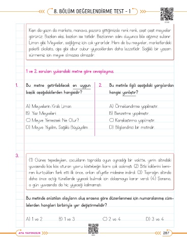 8. BÖLÜM DEĞERLENDİRME TEST - 1