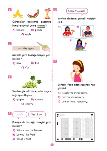 Verilen görseli ifade eden seçe- A) Touch the strawberry.