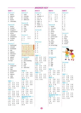 3. kangaroo 4. name Exercise B 3. table 10. h