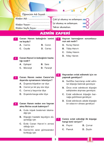 1 Canan Hanım bebeğinin ismini 5 Hayvan barınağının sorumlusu-