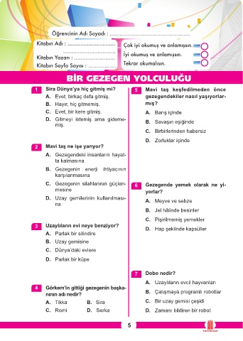 C. Gezegenin silahlarının güçlen- 6 Gezegende yemek olarak ne yi-