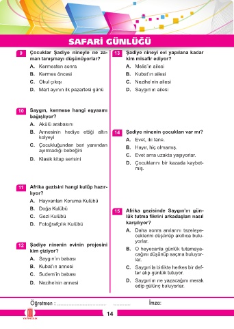9 Çocuklar Şadiye nineyle ne za- 13 Şadiye nineyi evi yapılana kadar