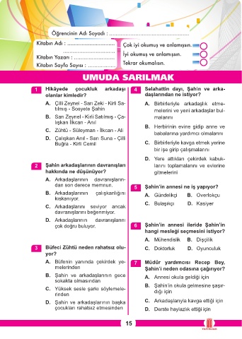 3 Büfeci Zühtü neden rahatsız olu- C. Doktorluk D. Oyunculuk