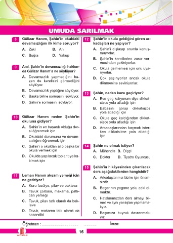 9 Anıl, Şahin’in devamsızılığı hakkın- C. Okula gelmemesi için onu uya-